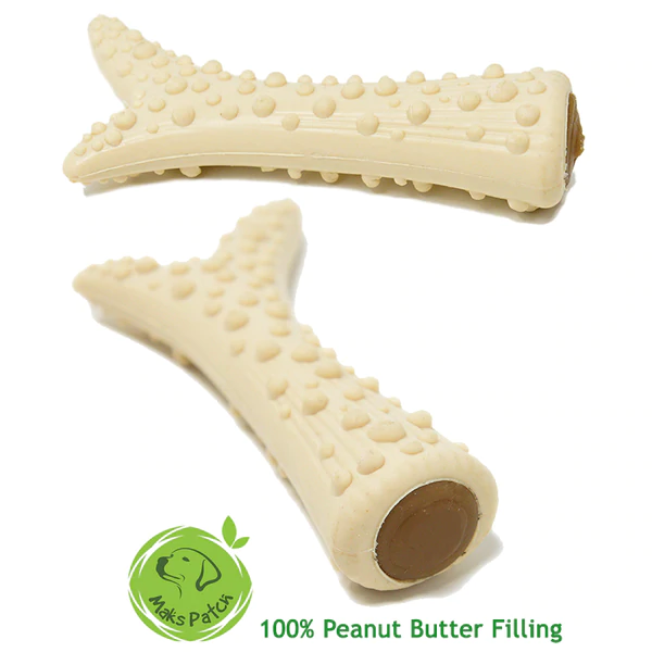 The natural peanut butter in our peanut butter filled antlers is 100% peanuts and nothing else! Meaning that it’s also Xylitol and Palm oil free, the delicious chews are in a fun Antler shape with bumps along the surface for texture and helping to reduce plaque along the way.
