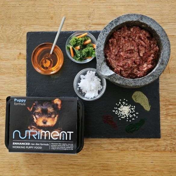 Nutriment’s puppy formula is suitable for puppies from the age of six weeks and upwards. Packed with essential nutrition for growing and developing young dogs, our raw puppy dog food contains high-quality, human-grade raw meat, biologically appropriate vegetables and nutrient dense superfoods. It is incredibly important that your puppy receives quality nutrition during the early stages of their life; so that they can develop healthily, with optimal body functionality. Our in-house canine nutritionists carefully select each ingredient to ensure it is suitable for a puppy’s diet.